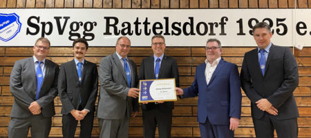 Im Rahmen der Generalversammlung mit Neuwahlen der SpVgg. Rattelsdorf überreichte der Kreisehrenamtsbeauftragte des Bayerischen Fußballverbandes Stefan Schmitt der Sportvereinigung Rattelsdorf das Gütesiegel für 15 Jahre ausgezeichneter Vereinsarbeit. Somit erhielt die SpVgg als erster Verein im Spielkreis 1 die höchste Auszeichnung des BFV in dieser Kategorie.