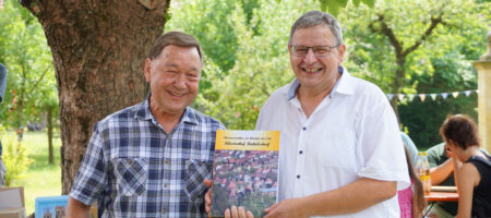 Im Titelbild: Manfred Jungkunz und Bürgermeister Hans-Jürgen Scheerbaum mit der Chronik.