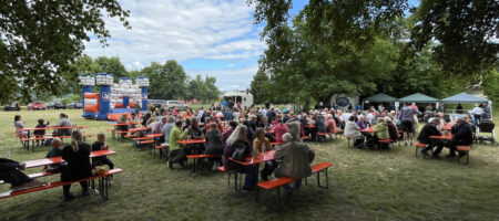 Für die anwesenden Kinder gibt es kostenlos Eis solange der Vorrat reicht. Zudem sorgt eine große Hüpfburg für viel Bewegung bei den Jüngsten.