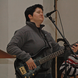 Den passenden „Soundtrack“ zu diesen Inhalten lieferte die Band, die zwischen dem Frage-Antwort-Spiel der beiden Erzähler inhaltlich exakt abgestimmtes Liedgut präsentierte. Die Darbietungen von Ute Walter (Bass und Gesang), Wolfgang Wich (Gitarre und Gesang), Silke Welsch (Gesang) und Katharina Böhnlein (Gesang) waren nicht nur inhaltlich, sondern auch qualitativ ein echter Hörgenuss. Mit großem Einfühlungsvermögen und ebenso großem Können wanderten auch sie auf einer musikalischen Entdeckungsreise, die Country-Einflüsse, meditative Kirchenlieder und eingängige Pop-Balladen zusammenfügte. Ihnen war es auch vorbehalten, mit. dem Lied „Alles was geschieht, lege ich in Gottes Hand“ eine eindeutige Antwort auf die vielen Fragen des Abends zu geben.