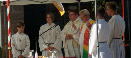 Zu einem Dankgottesdienst anlässlich seines 50-jährigen Priesterjubiläums hat die katholische Pfarrgemeinde Ebing ihren Monsignore Edgar Hagel am Sonntag, 03.07.2022 eingeladen. Auf dem wunderschön geschmückten Kirchplatz zelebrierte der Jubilar gemeinsam mit Pfarrvikar Philipp Janek einen festlichen Gottesdienst.