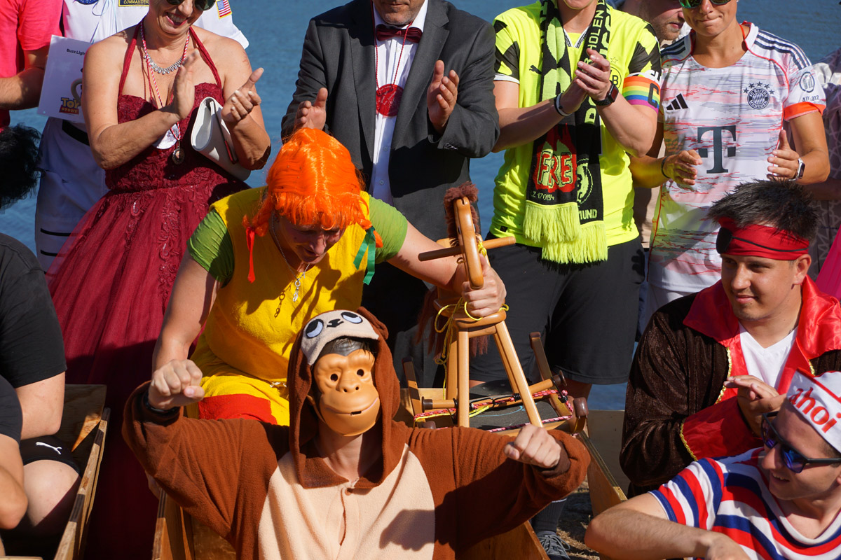 Es ist eines der Veranstaltungshighlights in der Region – und fand in diesem Jahr bereits zum 21. Mal statt: das Sautrogrennen. Während beim Ebinger Seefest am Vorabend noch die Läuferinnen und Läufer beim Seelauf ihr sportliches Können zeigen durften, waren nun am Samstag die Spaßvögel an der Reihe. Wobei: Sportlich sein schadet im Sautrog ja auch nicht unbedingt.