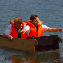 Hier liegt eines der Geheimnisse des Sautrogrennens – denn es ist gar nicht so einfach, den Trog zu beherrschen. Vor allem die Lage im Wasser ist wichtig, ebenso der richtige „Antrieb“. Die meisten Probleme hatten die Teilnehmer allerdings beim Start. So kippte etwa die Hälfte der Tröge direkt beim Start um. Die Wasserwacht, zur Sicherheit in einem Boot auf Beobachtungskurs, musste allerdings kein einziges Mal eingreifen. Im Finale standen schließlich die Teams „Stammtisch der Einfallslosen“ und „ASRF“. Letztere, namentlich Alexander Groh und Michael Mitschker, gewannen ein spannendes Rennen. Die Siegerehrung fand am Abend im Rahmen des Konzerts der Moskitos statt.