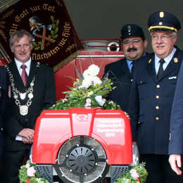 Erster Vorstand Johannes Hau und sein Stellvertreter Manfred Reißenweber erklärten das Einsatzspektrum des neuen Geräts. Die Tragkraftspritze liefert bei 10 bar Druck 1.000 Liter Wasser pro Minute. Damit ist sie in erster Linie für die Brandbekämpfung konzipiert. Doch auch für den Hochwasserschutz ist sie tauglich, beispielsweise beim Auspumpen von Kellern. Die FFW Hilkersdorf-Speiersberg leistet hervorragende Arbeit bei der Aus- und Weiterbildung der Aktiven, attestierte Kreisbrandrat Ziegmann, die Führungskräfte in Hilkersdorf und Speiersberg sind überzeugt davon, dass die neue Pumpe als Motivation für die Jugend zur verstärkten Mitarbeit dient.