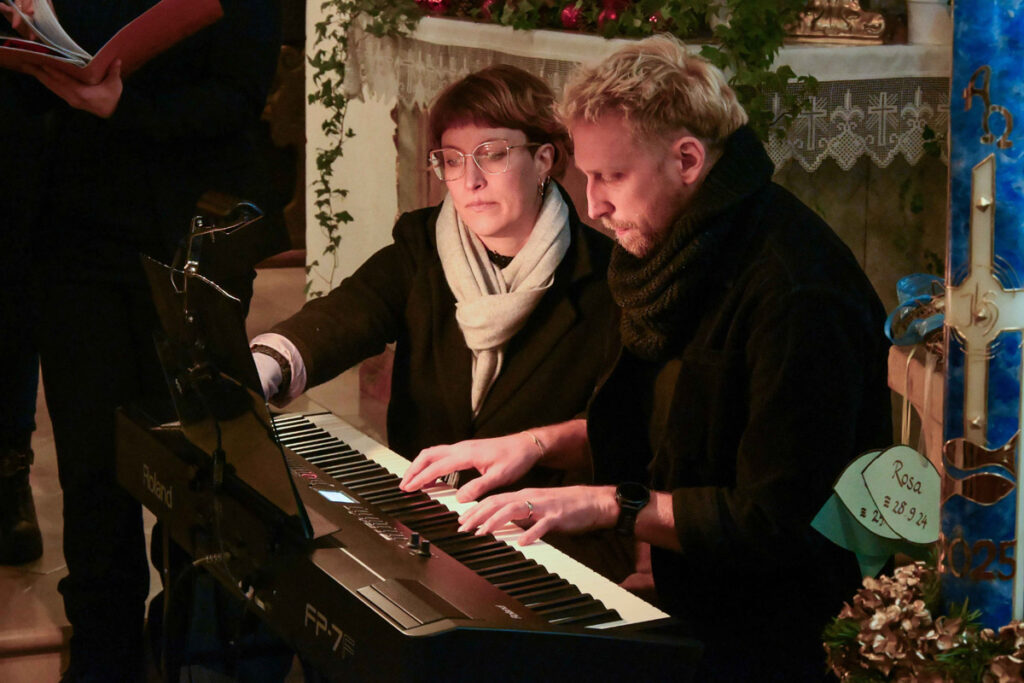 Am Ende des Konzertes wurde traditionell gemeinsam das Weihnachtslied „Oh du fröhliche“ gesungen. Jeder Teilnehmer erhielt ein kleines Licht für den Heimweg.