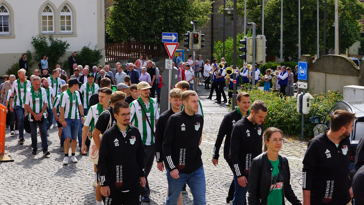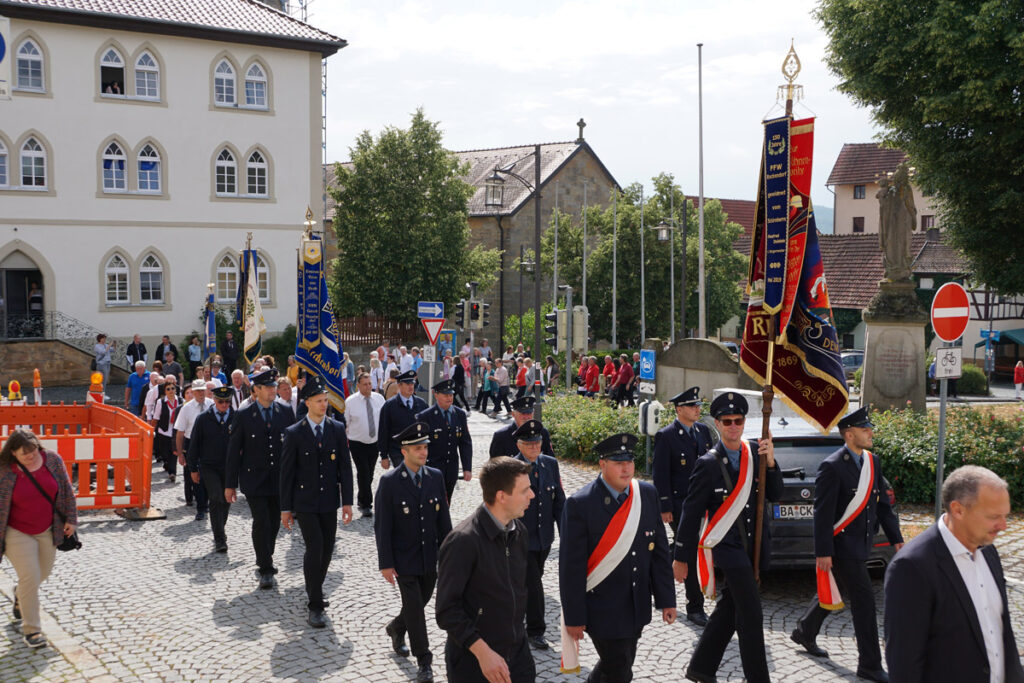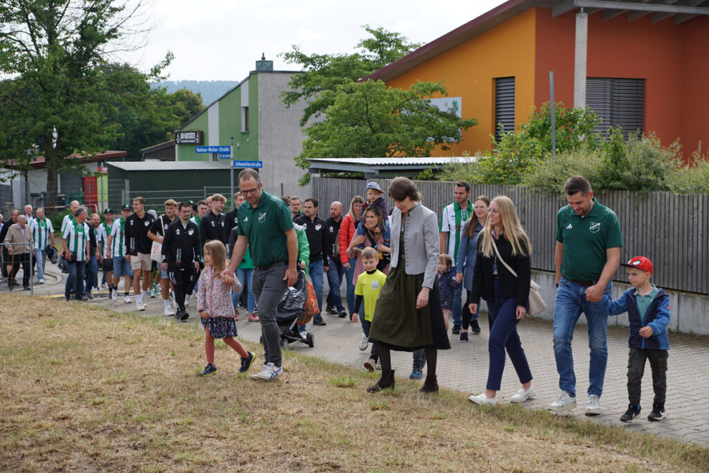 Der Festzug führte von der Kirche in der Ortsmitte zum Sportgelände.