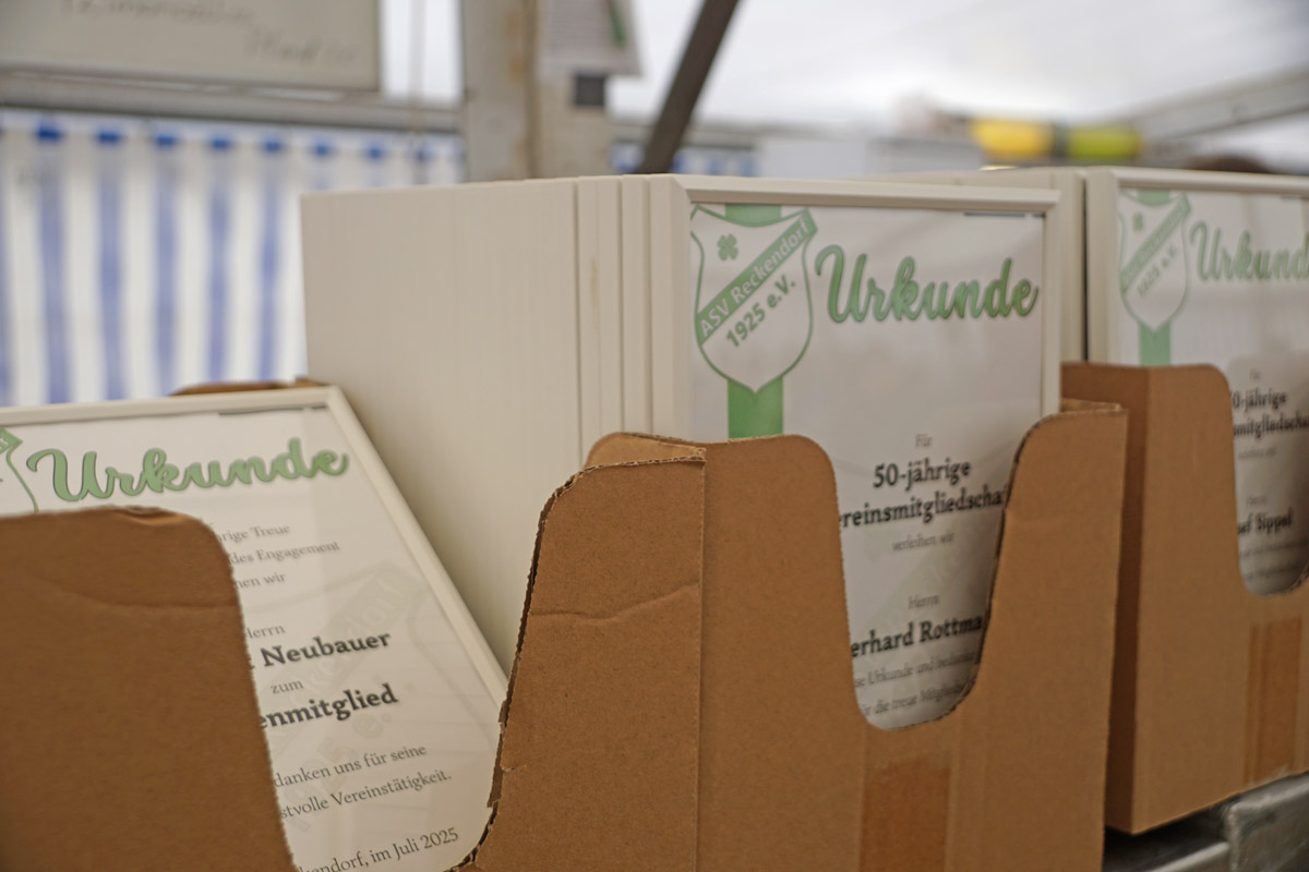 Im Rahmen des Festsonntags gab es auch diverse Ehrungen. Werner Aschenbrenner und Helmut Neubauer wurden zu Ehrenmitgliedern ernannt. Auszeichnungen für 75 Jahre Vereinszugehörigkeit ging an Hans Schwarz, für 70 Jahre an Robert Hegenwald und für 65 Jahre an Herbert Meinert und Walter Lang.