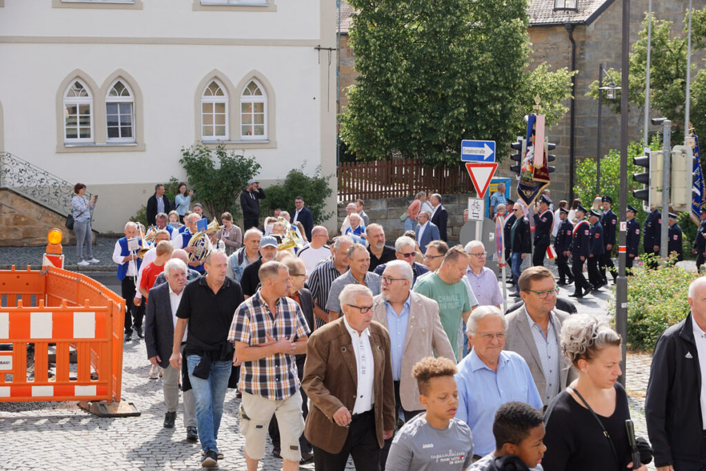 Nein, Egoismus hat im Sportverein nichts zu suchen. Vielmehr passiert alles im Team, nichts geht ohne Zusammenarbeit. Um diese Grundgedanken hatte Pfarrer Vincent Moolan Kurian seine Predigt gestrickt, die er zum großen Jubiläum des Sportvereins ASV am Sonntag, 13. Juli 2025, hielt. Angeführt von Schirmherrin Emmi Zeulner führte anschließend der Festumzug zum Festgelände, wo ein Weißwurstfrühstück sowie diverse Ehrungen auf dem Programm standen. Die Reckendorfer Musikanten unterhielten die Gäste.
