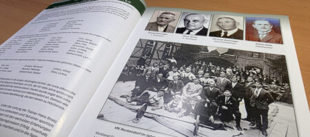 Im Titelbild: Zum Jubiläum wurde auch eine umfangreiche Chronik erstellt. Die aufgeschlagene Seite zeigt die Anfänge des Vereins.