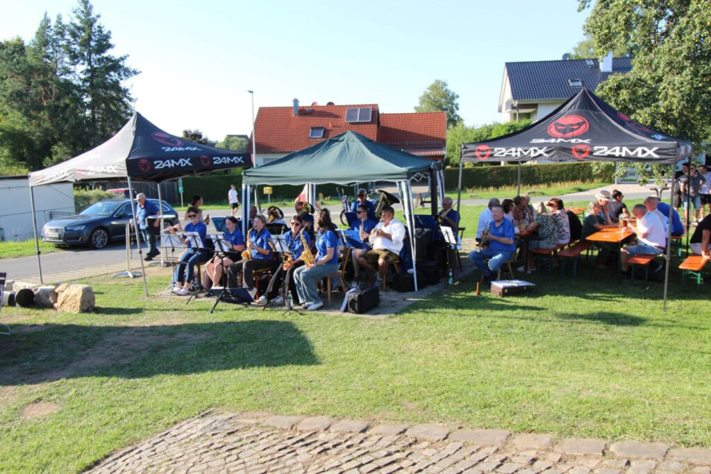 Die ausgeklügelte Choreographie der zwölf Helfer, welche jeweils in der Küche, an der Bar, am Ausschank und auf dem Platz dafür sorgten, dass Gläser und Teller gefüllt, und das Leergut wieder an die Quelle zurückging, sorgte für eine hervorragende Bewirtung der Gäste. Die musikalische Umrahmung durch die Reckendorfer Musikanten rundete den Sommerabend ab, so dass die Eröffnung für jeden Anwesenden zum unvergesslichen Ereignis wurde.
