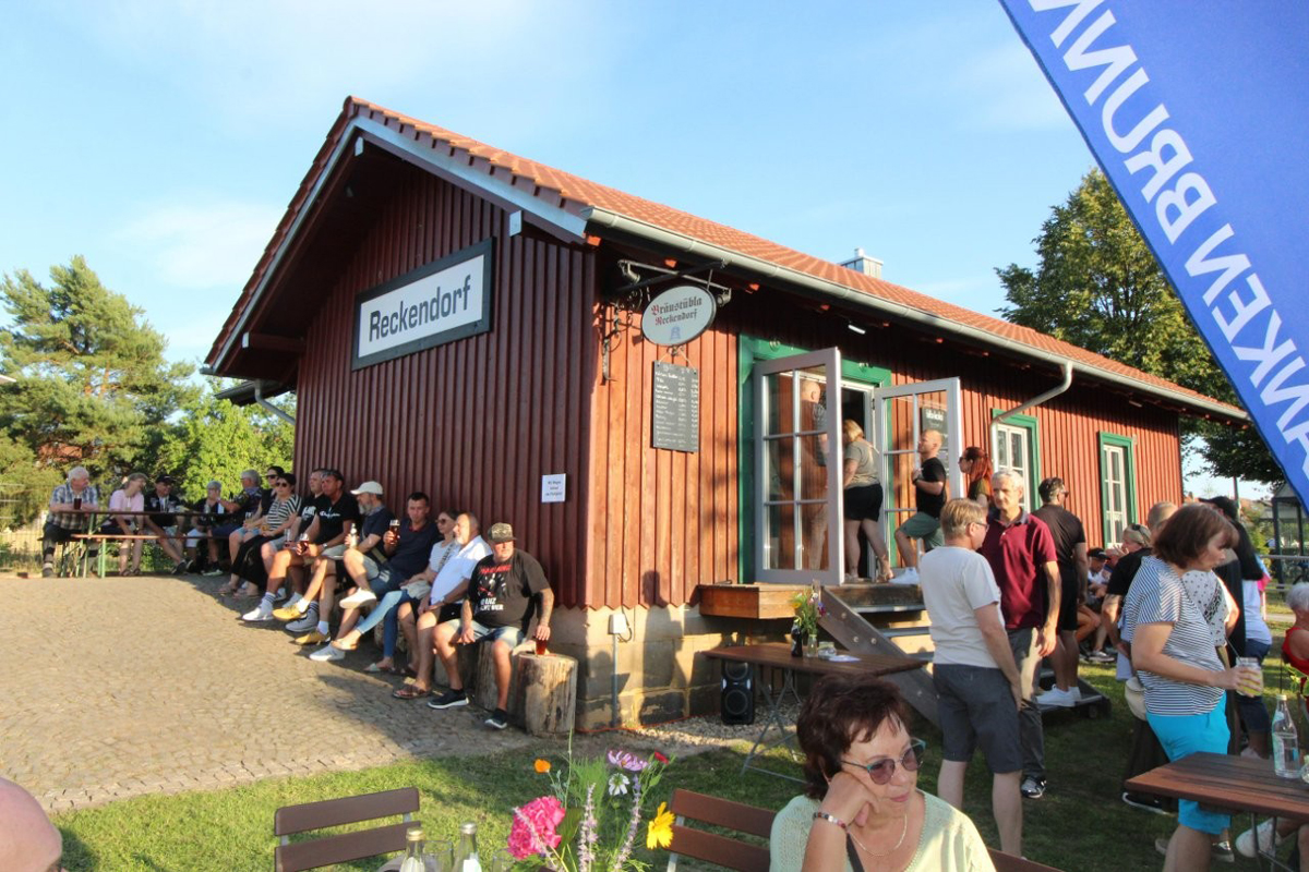 Die ausgeklügelte Choreographie der zwölf Helfer, welche jeweils in der Küche, an der Bar, am Ausschank und auf dem Platz dafür sorgten, dass Gläser und Teller gefüllt, und das Leergut wieder an die Quelle zurückging, sorgte für eine hervorragende Bewirtung der Gäste. Die musikalische Umrahmung durch die Reckendorfer Musikanten rundete den Sommerabend ab, so dass die Eröffnung für jeden Anwesenden zum unvergesslichen Ereignis wurde.