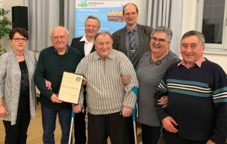 Besonders wichtig sei es, die Schwachen im gemeinsamen Handeln mitzunehmen, erinnerte das Gemeindeoberhaupt die Anwesenden. Und in diesem Sinn schritt der Bürgermeister zur Verleihung des Titels „Wackerer Recke“, der bereits zum fünften Mal verliehen wurde: Dabei handelt es sich um eine freiwillige Tat, die unentgeltlich angeboten wird, ohne die Funktion in einem Verein oder einer anderen Gemeinschaft auszuüben. Unter dem Motto „Asyl in Reckendorf“ – so die Laudatio – erklärte sich Anton Schneiderbanger mit einer selbstlosen Selbstverständlichkeit bereit, einen Reckendorfer Bürger bei sich aufzunehmen, der aus gesundheitspolizeilichen Gründen sein Haus von heute auf morgen verlassen musste. Mittlerweile ergänzen sich die beiden und bilden dank der unbürokratischen spontanen Hilfe des „Wackeren Recken 2019“ eine sich gegenseitig unterstützende „Männer-WG“. Sichtlich gerührt und bescheiden nahm Anton Schneiderbanger die Ernennung und Urkunde von Bürgermeister Deinlein in Empfang.