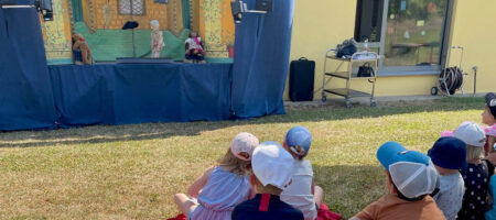 Ende Juni verwandelte sich der Garten der Johanniter-Kinderinsel in eine Theaterbühne: Zu Gast war das Marionettentheater aus Fürth „Die rollende Kulisse“ mit dem Stück „Die schlampige Prinzessin“.