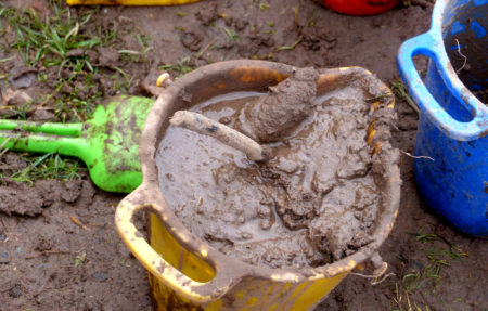 Nun können die Kinder nach Herzenslust „matschen“.