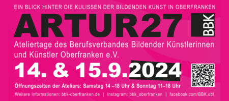 In den Ateliers bekommen Sie einen unmittelbaren Eindruck von der Arbeitsweise der Künstler und dem individuellen Schaffensprozess. Dies womöglich auch an Arbeiten, die noch im Entstehen sind. Sie haben die Möglichkeit die geistigen Grundlagen, die Ideen, die Inspirationen und Hintergründe der Werke mit den Künstlern, aber auch anderen Besuchern zu diskutieren. Nicht zuletzt sind Künstlerateliers auch ein Ort der Anregung, und des Wohlfühlens. Von Malerei, Zeichnung, Bildhauerei, Druckgrafik und Textilkunst bis hin zu Performance sind sehr viele künstlerische Disziplinen vertreten. Die geöffneten Ateliers sind über ganz Oberfranken verteilt und alle Kunstschaffenden freuen sich darauf am Samstag 14.9. von 14 bis 18 Uhr und am Sonntag 15.9. von 11 bis 18 Uhr Besucherinnen und Besucher in ihren Ateliers zu begrüßen. Gleichzeitig ist an diesem Artur-Wochenende die Geschäftsstelle des BBK-Oberfranken e.V. für Besucherinnen und Besucher geöffnet. Dort sind experimentelle Druckgraphiken von BBK-Mitgliedern aus Frankfurt aus der Nähe zu betrachten, die im Rahmen der Deutschland-weiten Druckmappenaustausch-Ausstellungen ihren Weg nach Bamberg gefunden haben.