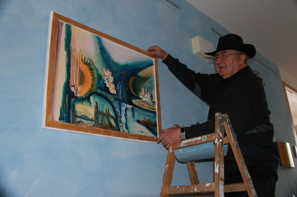 Der „Kemmärä Kuckuck“ Hermann Utter reist, antizyklisch zu seinen gefiederten Artgenossen, im Herbst und Winter gen Norden in seine Fränkische Heimat – sozusagen für die Weihnachts- und Ostersaison. Denn da wird er am Kontrabass in der hiesigen Trachtengruppe gebraucht. In seine zweite Heimat Fonyód reist der Wahl-Ungar über die Frühlings- und Sommermonate. Beide Regionen inspirieren den Kunstmaler zu landschaftlich geprägten Bildern. Diese werden ab 25. März im Seniorenzentrum St. Kilian in Hallstadt ausgestellt. Nachrichten am Ort hat den Kemmerner beim Aufhängen seiner Bilder in Hallstadt besucht.