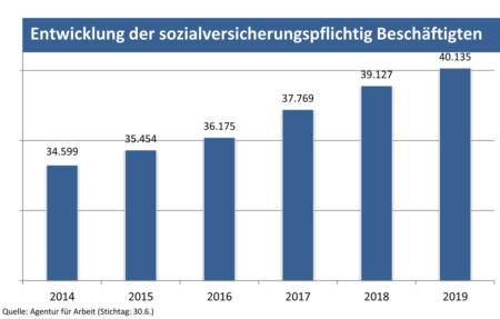 Die Zahl der sozialversicherungspflichtig Beschäftigten im Landkreis überspringt erstmals die Marke von 40.000.
