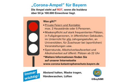 Die Corona-Ampel in Stadt und Landkreis ist auf ROT umgesprungen. Bild: Bayerisches Innenministerium