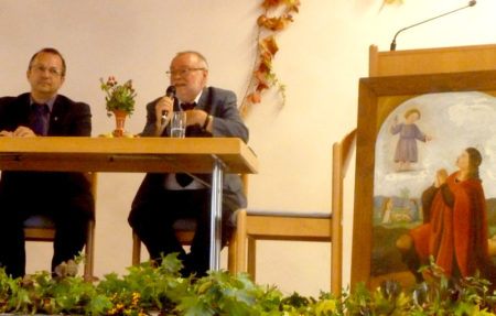Professor Dr. Ottmar Fuchs beleuchtete das Thema „Wer nicht teilen will, muss töten?“ „Vergesst nicht die Gastfreundschaft; durch sie haben manche Engel beherbergt und wussten es nicht. “ So steht es im Neuen Testament im Brief an die Hebräer. Seit Beginn der Menschheit war ein Miteinander und ein Teilen, schon immer wichtig! Diese Offenheit geht Hand in Hand mit der Erwartung, dass gerade vom Anderen und Fremden etwas Wichtiges erwartet wird: eine Botschaft, eine Infragestellung, eine Bereicherung, vielleicht auch eine Verwunderung. Diese Botschaft gewinnt heute, angesichts von Millionen von Menschen auf der Flucht, eine unaufschiebbare Brisanz, zwischen Glaube und Politik, zwischen Vertrauen und Solidarität! Mit den reichen und armen Ländern treffen Unterschiede aufeinander, die zu Spannungen und Kriegen führen. Dass die reichen Länder teilen müssen, hätte man schon vor vielen Jahren erkennen müssen und mit der Verteilung der Ressourcen rechtzeitig die Armut in vielen Ländern lindern können. Solche Umverteilungen darf es nicht durch Forderungen geben, sie müssen von der Liebe heraus entstehen und dafür müssen wir unser Bewusstsein ändern. Vor Gott kommt niemand zu kurz und alles was wir leisten ist ein Geschenk. Es ist eine Gnade, in der Demokratie aufzuwachsen, mit 75 Jahren ohne Krieg. Das wichtigste ist die Liebe Gottes, die über den Tod hinaus bleibt. In einer Diskussionsrunde wurde das Thema vertieft und über die aufgetretene Frage „Ist Gott in der Kirche befreiend?“ geredet.