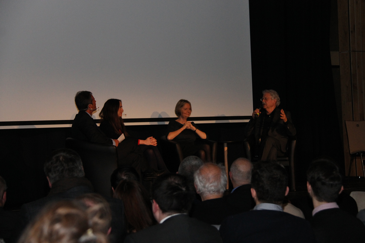 [6]Im Gespräch mit Frank Förtsch: Tanja Kinkel, Kirsten Boie und Paul Maar (v.l.)