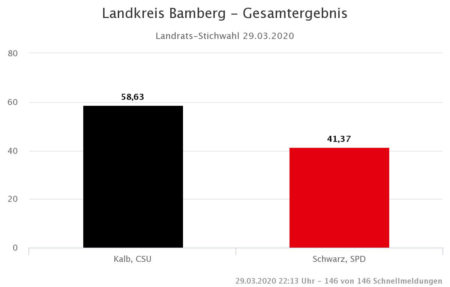 Nur per Briefwahl konnte der neue Landrat des Landkreises Bamberg gewählt werden, ein Novum. Hatte Johann Kalb bei der Stichwahl vor zwei Wochen [6] mit 49,46 Prozent die absolute Mehrheit nur knapp verfehlt, konnte er sich diesmal etwas deutlicher durchsetzen.