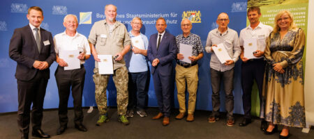 Im Titelbild: Fünf ehrenamtliche Naturschutzwächter des Landkreises Bamberg wurden jetzt vom Umweltministerium ausgezeichnet. (Quelle: Bayerisches Staatsministerium für Umwelt und Verbraucherschutz)
