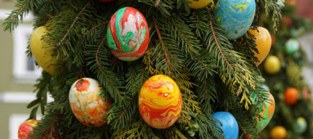 Einen ganzen Tag verbringen in Lauf bei Zapfendorf die Helferinnen und Helfer beim Schmücken des Osterbrunnens. Viel Arbeit fällt aber auch schon zuvor an, zum Beispiel das Girlanden-Binden oder das Bemalen der Eier. Über 5.000 echte Eier zieren den Laufer Osterbrunnen, auf einigen zeigen sich sogar Persönlichkeiten der Kirchengeschichte, etwa Papst Benedikt XVI. oder Heinrich Bedford-Strohm, Landesbischof der evangelischen Kirche in Bayern. „Wir wollen nicht den größten, sondern den schönsten Brunnen haben“, verraten die Laufer. Bis 14 Tage nach dem Ostermontag wird der Brunnen, der schon seit 1979 alljährlich aufgebaut wird, stehen bleiben. Am Ostersonntag gibt es Kaffee und Kuchen für die Besucher.