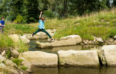 Kindern lernen durch Ausprobieren und Nachmachen. Und da können Eltern jetzt aus der Umweltbildung grundlegende Dinge für den Alltag mitnehmen. Was Kinder neben den offensichtlichen Grundbedürfnissen wie Nahrung oder Zuwendung für ihre Entwicklung brauchen, lässt sich unter den fünf Begriffen Höhle-Klettern-Matsch-Wasser-Feuer zusammenfassen. Das sind genau die Spiele, die sich Kinder überall auf der Welt und zu allen Zeiten von selbst ausdenken, weil sie für die Entwicklung der Kinder notwendig sind. „Jeder hat da aus seinem eigenen Leben Bilder im Kopf, von der Pfütze in die man unbedingt hineinspringen muss, vom Johannisfeuer, dessen Funken in Nacht steigen oder dem Kribbeln im Bauch vor dem Überspringen des Grabens.“