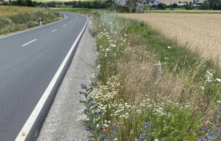 Die blühende Pracht kommt nicht von ungefähr. Bereits bei der Planung des Straßenausbaus 2018, also noch vor dem Volksbegehren zur Artenvielfalt, stellte man am Landratsamt Überlegungen an, wie der notwendige Eingriff in Natur und Landschaft möglichst verträglich zu gestalten sei.