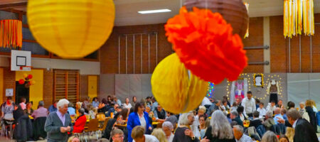 Schon im Eingangsbereich konnten die Gäste in die Vereinsgeschichte eintauchen, dank Bilderkollagen von Hochzeiten, Auftritten, Ausflügen und vielem mehr. Die Halle selbst war liebevoll geschmückt mit Kostümen der vergangenen Jahre und passender Dekoration an den Wänden.