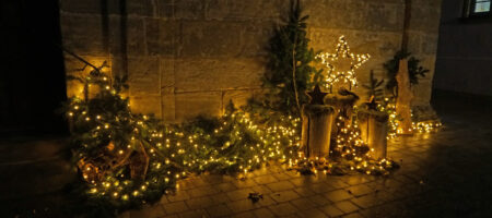 Im Titelbild: Weihnachtsdekoration vor der Kirche in Lauf
