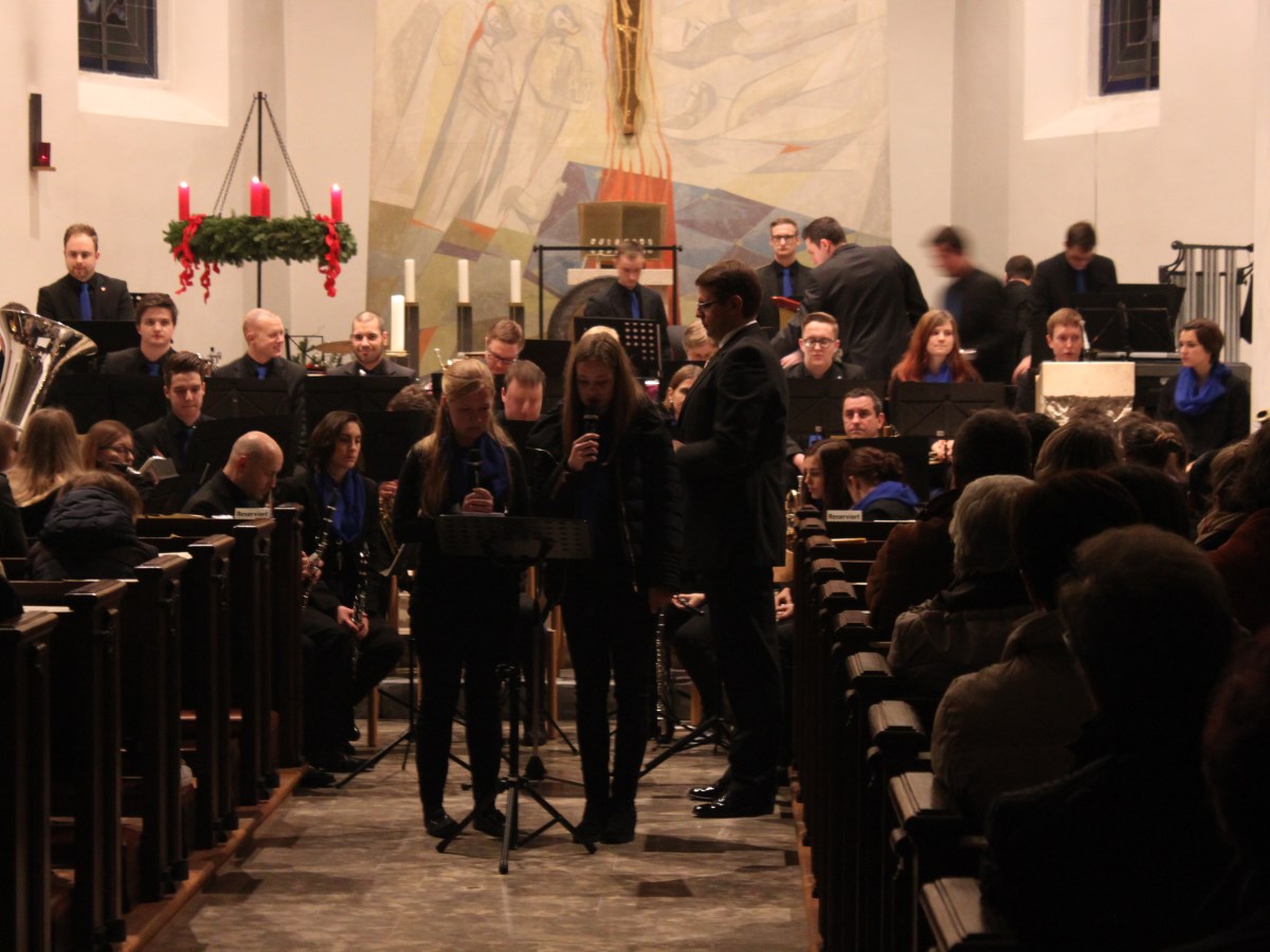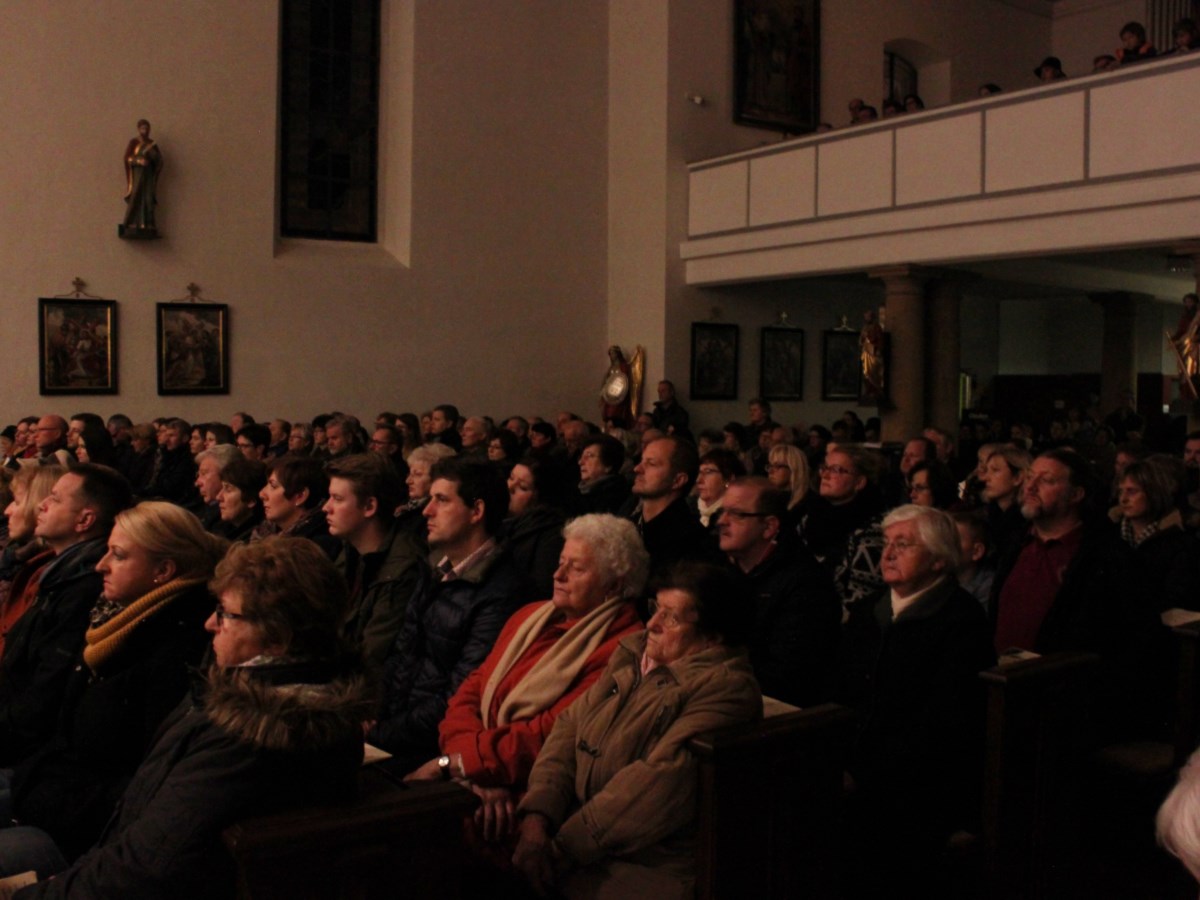 Aber auch Weltliches kann das Orchester, wie es mit der Komposition „Two-Worlds“ von Phil Collins und natürlich dem vorweihnachtlichen Klassiker „Last Christmas“ und dessen Arrangement von Andrew Watkin unter Beweis stellte. Dabei kamen obendrein exotische Instrumente wie Bongos oder ein Schlagzeug zum Einsatz, die das klassische Orchesterkostüm aufbrachen und für Abwechslung sorgten. Passend dazu – vor allem vor dem Hintergrund der Einweihung der neuen Kirchenorgel am Vormittag – trug Organist Wolfgang Reh ein Orgelsolostück aus der „Suite Gothique“ von Leon Boellmann vor, das die Klanghaftigkeit des neuen Instruments sowie das Können des Altmeisters erkennen ließ. Abschluss des offiziellen Programms lieferte Johann Sebastian Bachs „Toccata in D-Minor“, die die Zuschauer zu stehenden Ovationen verführte.