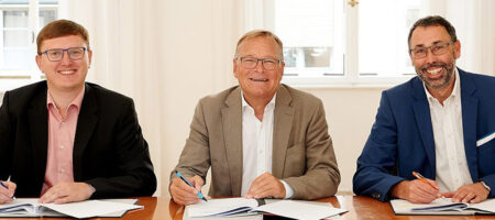 Im Titelbild: Oberbürgermeister Andreas Starke (M.) und Zapfendorfs Bürgermeister Michael Senger (l.) unterzeichnen die Nutzungsverträge mit dem Energieparkentwickler UKA zur Planung von Windkraftanlagen auf Flächen der Bürgerspitalstiftung Bamberg und des Marktes Zapfendorf. Rechts im Bild: UKA-Niederlassungsleiter Dr. Georg Konrad. Foto: Stadt Bamberg, Sonja Seufferth