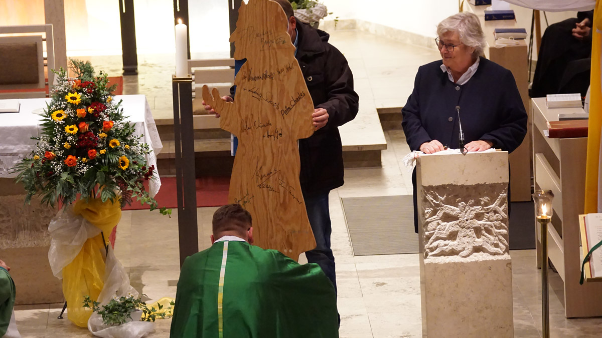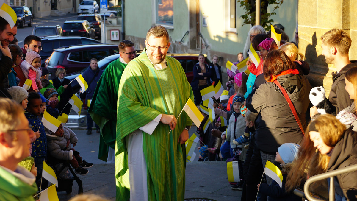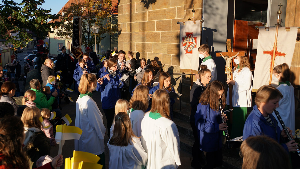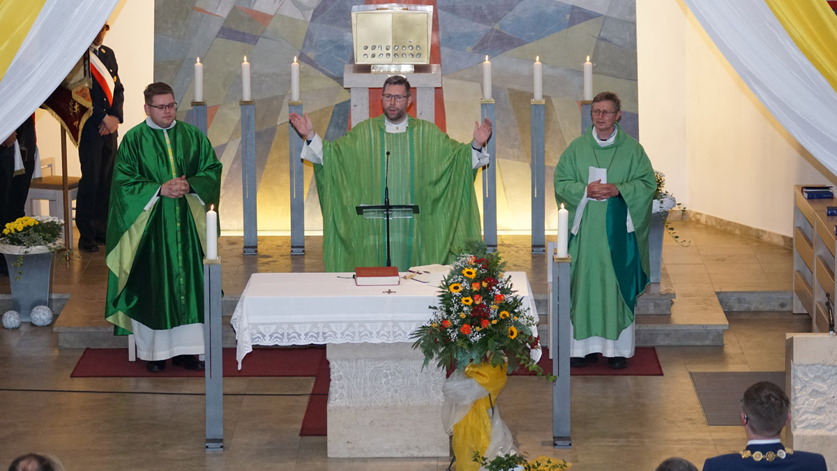 Für Pfarrer Vincent gab es derweil viele lobende Worte. Peter Großkopf, Vorsitzender des Gemeinsamen Ausschusses der Pfarreiengemeinschaft, bezeichnete ihn als einen Priester, der nicht nur aus schweren Büchern ablese, sondern der immer persönliche Worte finde. Nach dem Gottesdienst überraschte der Musikverein den neuen Pfarrer musikalisch. Schon vorher hatten ihn der Kindergarten St. Oswald und der Gesangverein begrüßt.