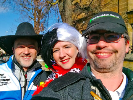 Nach einem Jahr Pause hieß es 2017 wieder: „Zapfendorf, Helau!“ Am Faschingsumzug am Faschingssonntag nahmen 25 Gruppen teil. Dank des tollen Wetters waren besonders Bamberger Straße und Hauptstraße gesäumt von vielen Besuchern. Angeführt wurde der Umzug von den Bannerträgern aus Unterleiterbach und dem Wagen der Gemeinde mit Bürgermeister Volker Dittrich. Sein Thema: Schienenersatzverkehr. Und die ICE-Baustelle beschäftigte auch andere Teilnehmer.