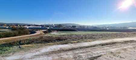 Im Titelbild: In diesem Bereich im geplanten Gewerbegebiet auf der Westseite der Bahn war eine Wohncontaineranlage für Flüchtlinge angedacht.