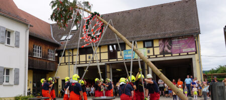 Im Titelbild: Das Zapfendorfer Feuerwehrhaus bei der Aufstellung des diesjährigen Kirchweihbaums. Das Gebäude sollte durch einen Neubau ersetzt werden.