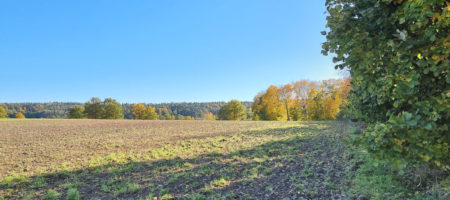 Unser Foto zeigt das abfallende Gelände des Bereichs. Die höchsten Gebäude sollen sich im Norden, also am Ende unseres Bildes in der Mitte, befinden.