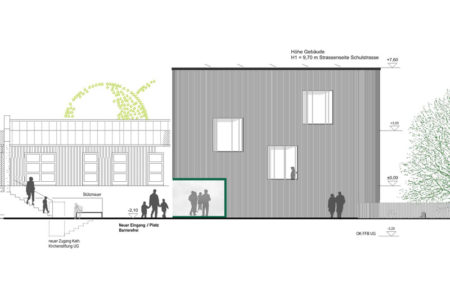 Im Zuge der Bauarbeiten wird auch der Eingangsbereich für das Bestandsgebäude überarbeitet. Eine neue Treppenanlage wird kommen, dazu kann für einen barrierefreien Zugang künftig der Eingang des neuen Gebäudes genutzt werden, denn dieses erhält einen Aufzug. Nach dem Neubau sind in der Kita St. Franziskus dann zwei Krippen- und fünf Kindergartengruppen beheimatet. Vogels rechnet mit Kosten von rund 3,2 Millionen Euro, der Eigenanteil der Gemeinde dürfte bei etwa 400.000 Euro liegen. Sollte das aktuell laufende Förderprogramm des Bundes nicht mehr greifen – der Antrag muss bis 31. August gestellt werden, eine Aufstockung der aktuell ausgeschöpften Mittel ist aber nicht garantiert – wären es ca. 440.000 Euro mehr.