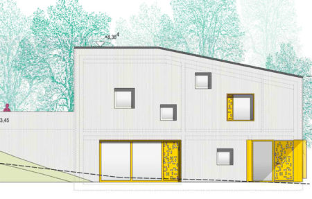 Vogels ging auch auf die Gestaltung ein. Im Vergleich zur Präsentation im Juli vergangenen Jahres [7] haben sich nur kleinere Änderungen ergeben – es bleibt bei einem zweistöckigen Gebäude mit je einer Krippengruppe pro Etage. Zur barrierefreien Erschließung muss zwingend ein Aufzug eingebaut werden. Die obere Krippengruppe kann allerdings über eine Rampe (Neigung ca. zehn Prozent), auch ohne die Treppe oder den Aufzug zu benutzen, den Garten erreichen. Für die Fassade plant Vogels mit vorbehandeltem Holz, da hier eine gleichmäßige Verwitterung stattfinde. Eine verputzte Fassade mit Anstrich hätte aufgrund der vielen Bäume in der Umgebung einen hohen Wartungsaufwand aufgrund von Veralgung. „Die Mehrkosten für eine Holzfassade liegen bei etwa 10.000 Euro, das entspricht in etwa einmal Streichen inklusive Gerüst“, erklärte Vogels. Bei einem Baubeginn im dritten Quartal 2019 könnte die Inbetriebnahme im Frühjahr 2021 erfolgen. Die aktuell in Zapfendorf verfügbaren Krippenplätze sind allerdings nach aktuellem Stand ab Herbst 2020 voll, so dass sich eine Übergangsphase ergeben wird.