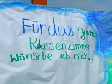 Nach der Einweihung war beim Schulfest viel geboten. Die Klassen zeigten Bastelarbeiten, das Ansäen von Kräutertöpfen und boten eine Spielstraße, Torwandschießen und auch eine Wünschewand für das Grüne Klassenzimmer an. Dieses soll nun für verschiedene Projekte und für die offene Ganztagsschule, aber auch für normale Unterrichtsstunden zur Verfügung stehen. Eine Tafel gibt es aber nicht – und das macht das Grüne Klassenzimmer dann doch zu einem besonderen Raum für besonderen Unterricht …