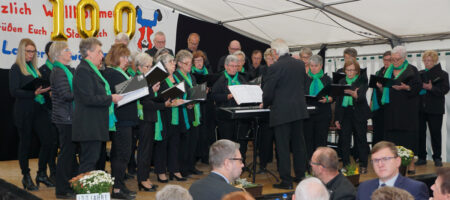 Im Titelbild: Sängerinnen und Sänger des Gesangvereins Cäcilia Zapfendorf beim Festakt zu 100 Jahre Liederkranz Lauf [6]