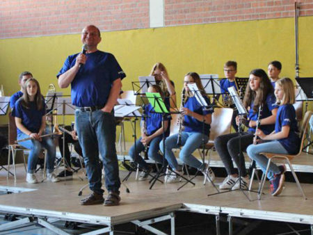 Die Jugendlichen gaben zum Beispiel die „Hymne aus dem Auenland“ aus der Filmmusik zu „Herr der Ringe“ zum Besten. Schließlich zeigten noch einige Musiker und Musikerinnen aus dem Hauptorchester, welche spielerische Qualität man mit etwas Übung erreichen kann. So wurde das Publikum von einem Holzbläsertrio bestehend aus Fagott, Querflöte und Klarinette sowie einem Blechbläserensemble besetzt mit Posaune, Euphonium, Waldhorn, Flügelhorn und Trompete gut unterhalten.