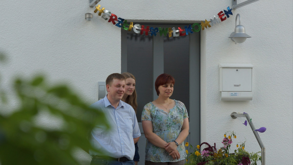 Begrüßung im Jahr 2013 – Kornelius Holmer mit seiner Frau vor dem Pfarrhaus.