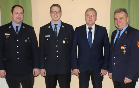 v.l. stv. Kommandant Sascha Schneiderbanger, Kommandant Thomas Neuberger, Bürgermeister Volker Dittrich, Vorstand Rudolf Förner