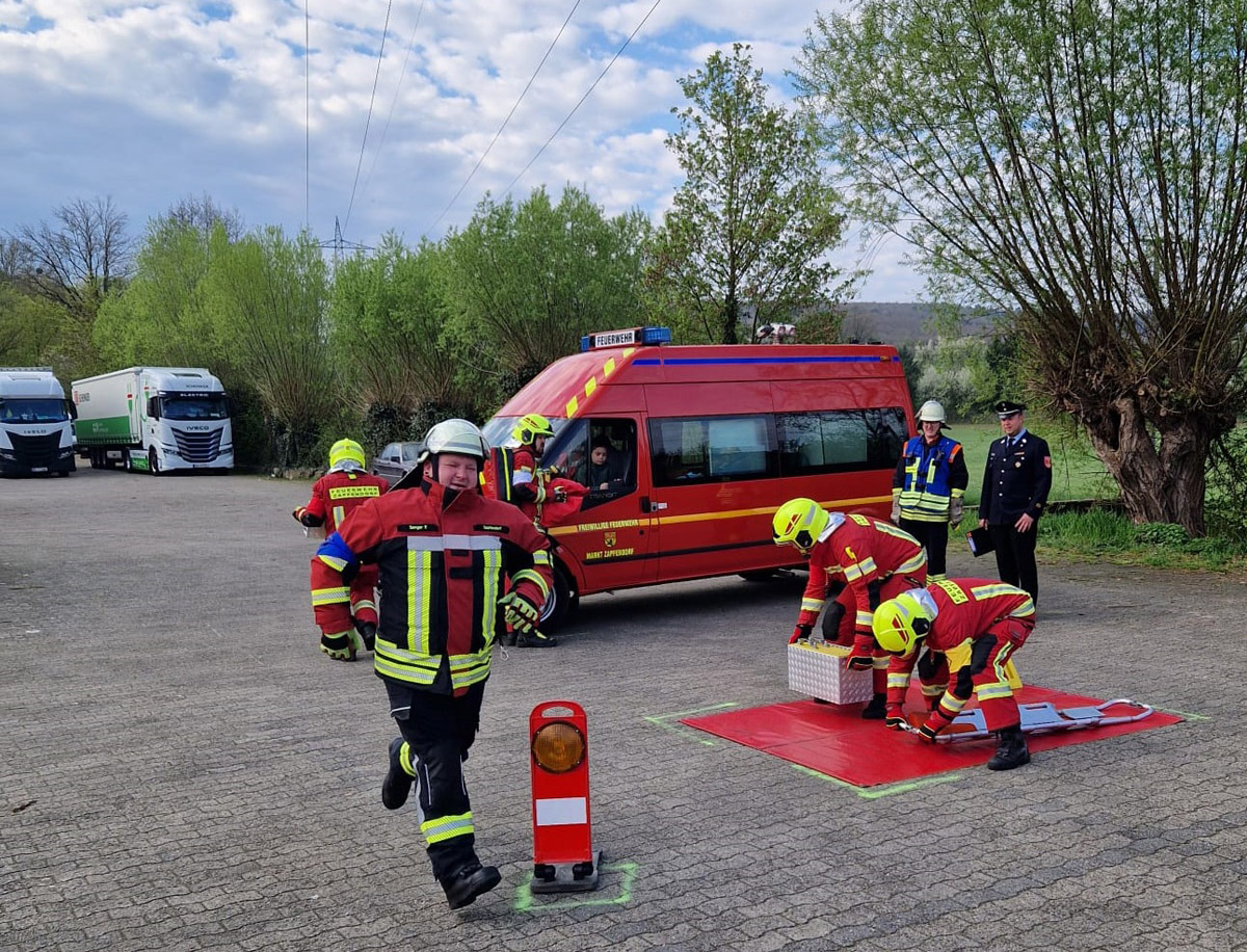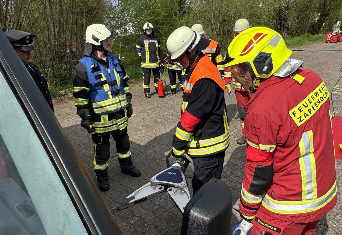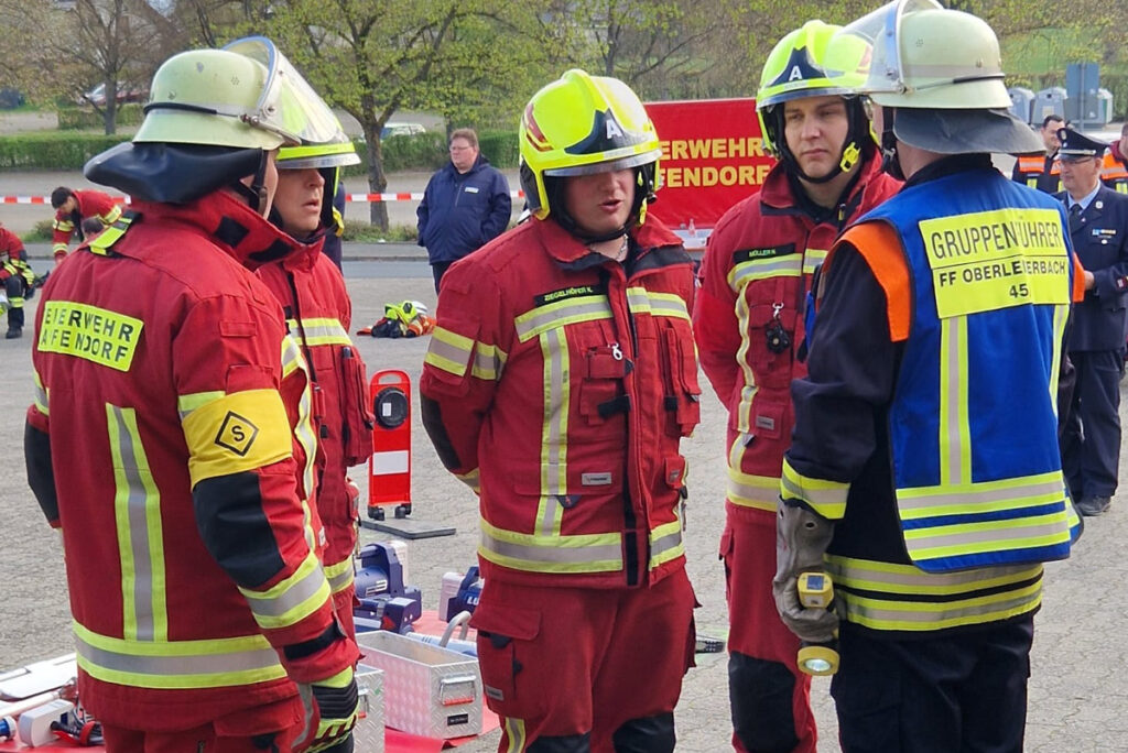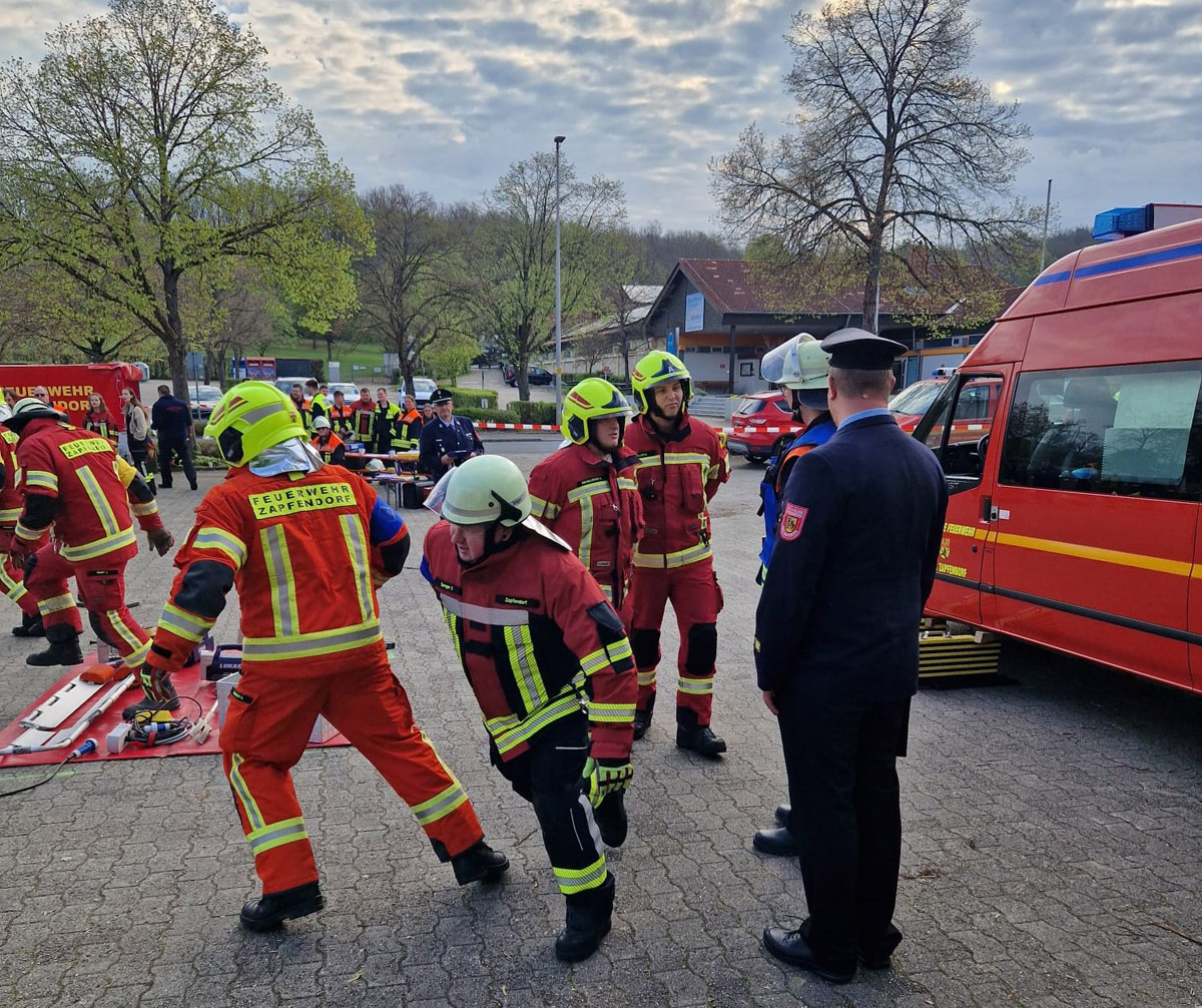 Was in diesen Vormittagsstunden auf dem Parkplatz des Aquarena nur wenige hundert Meter von der Bundesautobahn73 entfernt simuliert wird, ist ein Szenario, dass jederzeit alarmiert werden kann und für viele Feuerwehren der Region zum Standard gehört: Technische Hilfeleistung. Alles andere als Standard ist jedoch diese Leistungsprüfung: Sie ist kommunen- und inspektionbereichsübergreifend, hat mit acht Gruppen eine riesige Zahl an Teilnehmerinnen und Teilnehmern.
